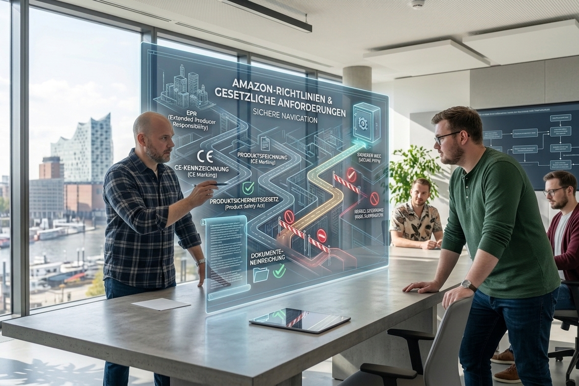Wir navigieren Sie sicher durch den Dschungel der Amazon-Richtlinien und gesetzlichen Anforderungen (z. B. EPR, CE-Kennzeichnung, Produktsicherheitsgesetz). Wir unterstützen bei der Einreichung notwendiger Dokumente und Zertifikate, um die Verkaufsfähigkeit Ihrer Produkte dauerhaft zu sichern und Sanktionen oder Sperrungen vorzubeugen.